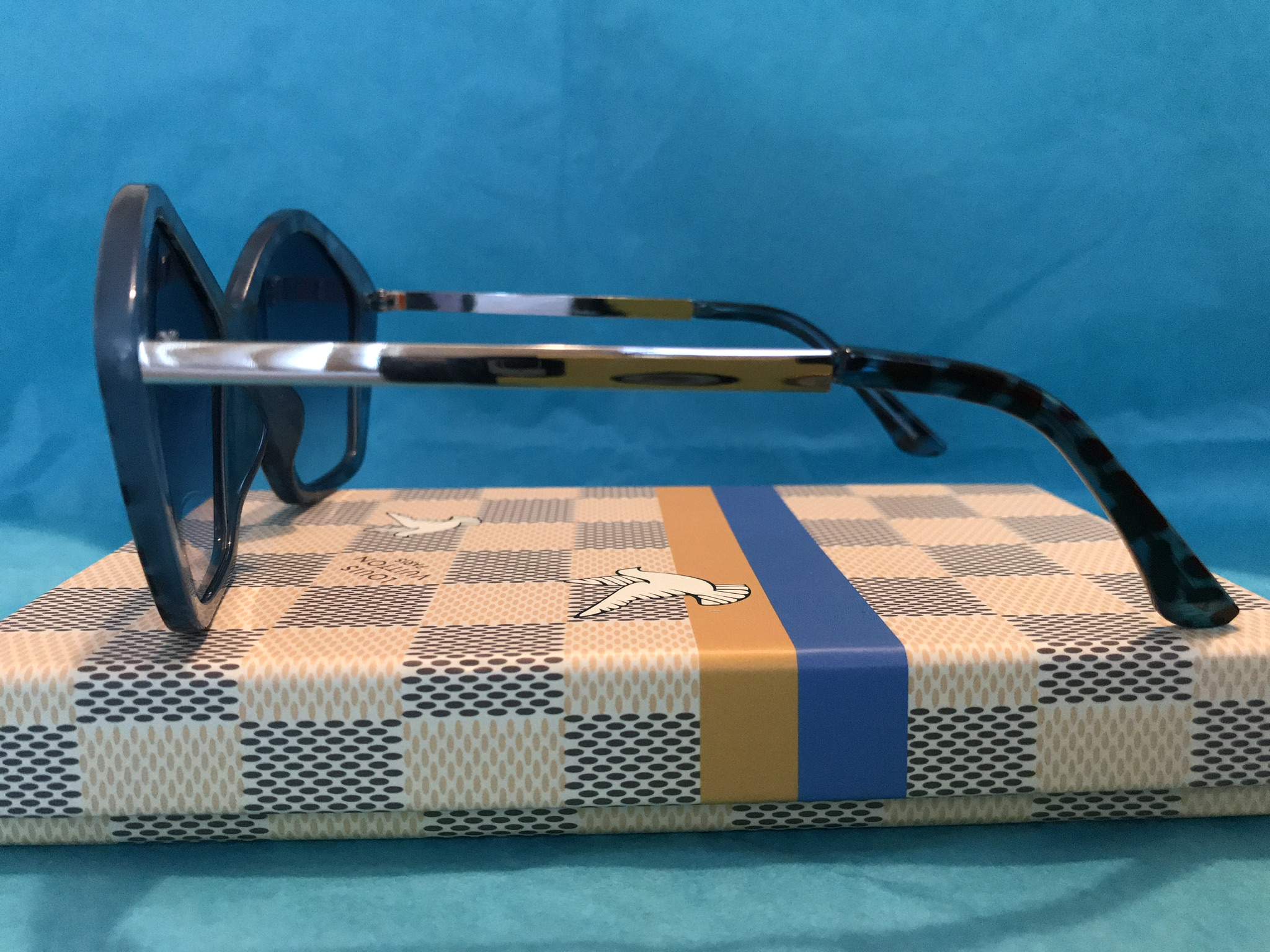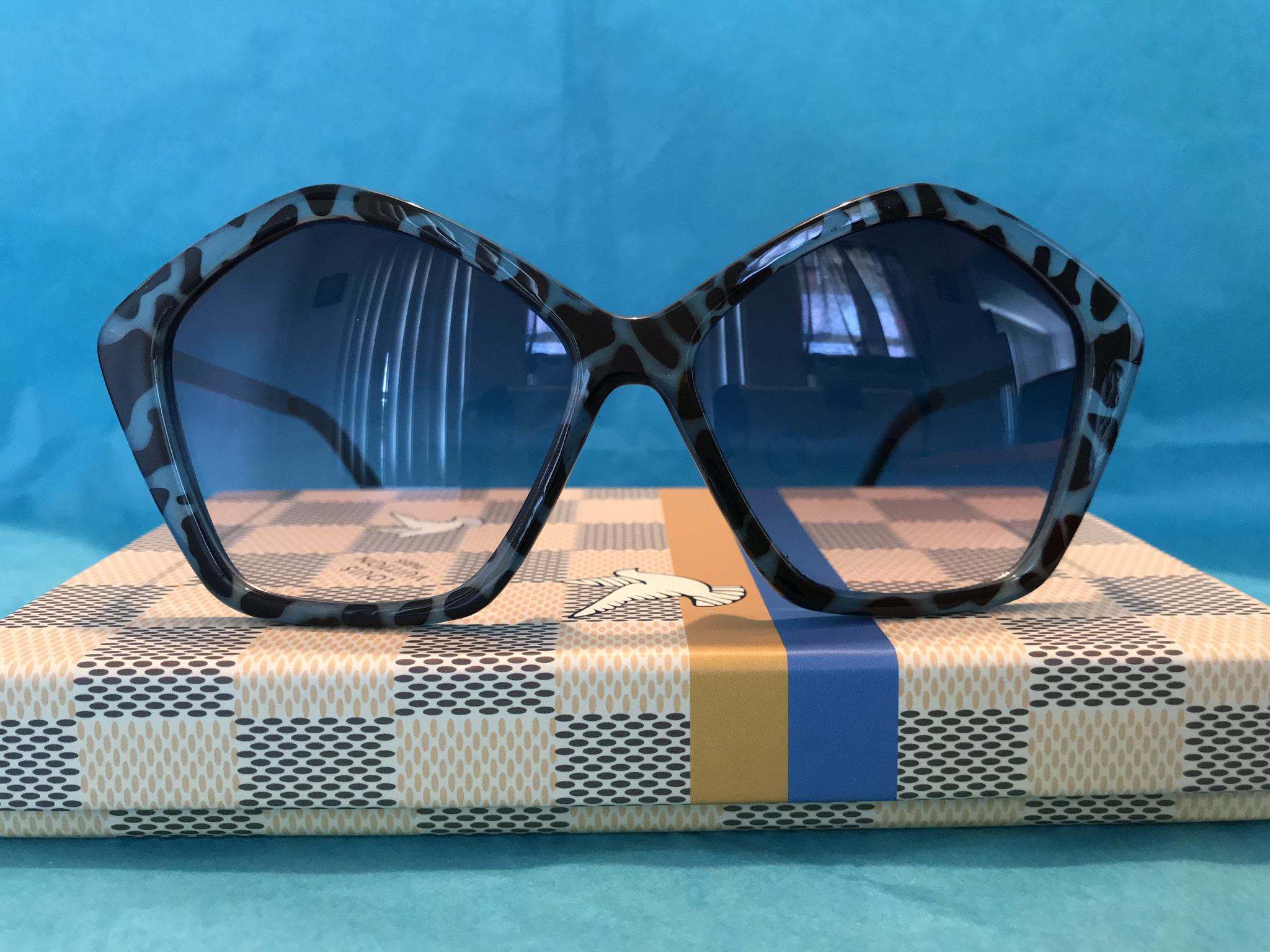 Blue Animal Print Oversize Sunglasses with silver arm. UV 400 Protection