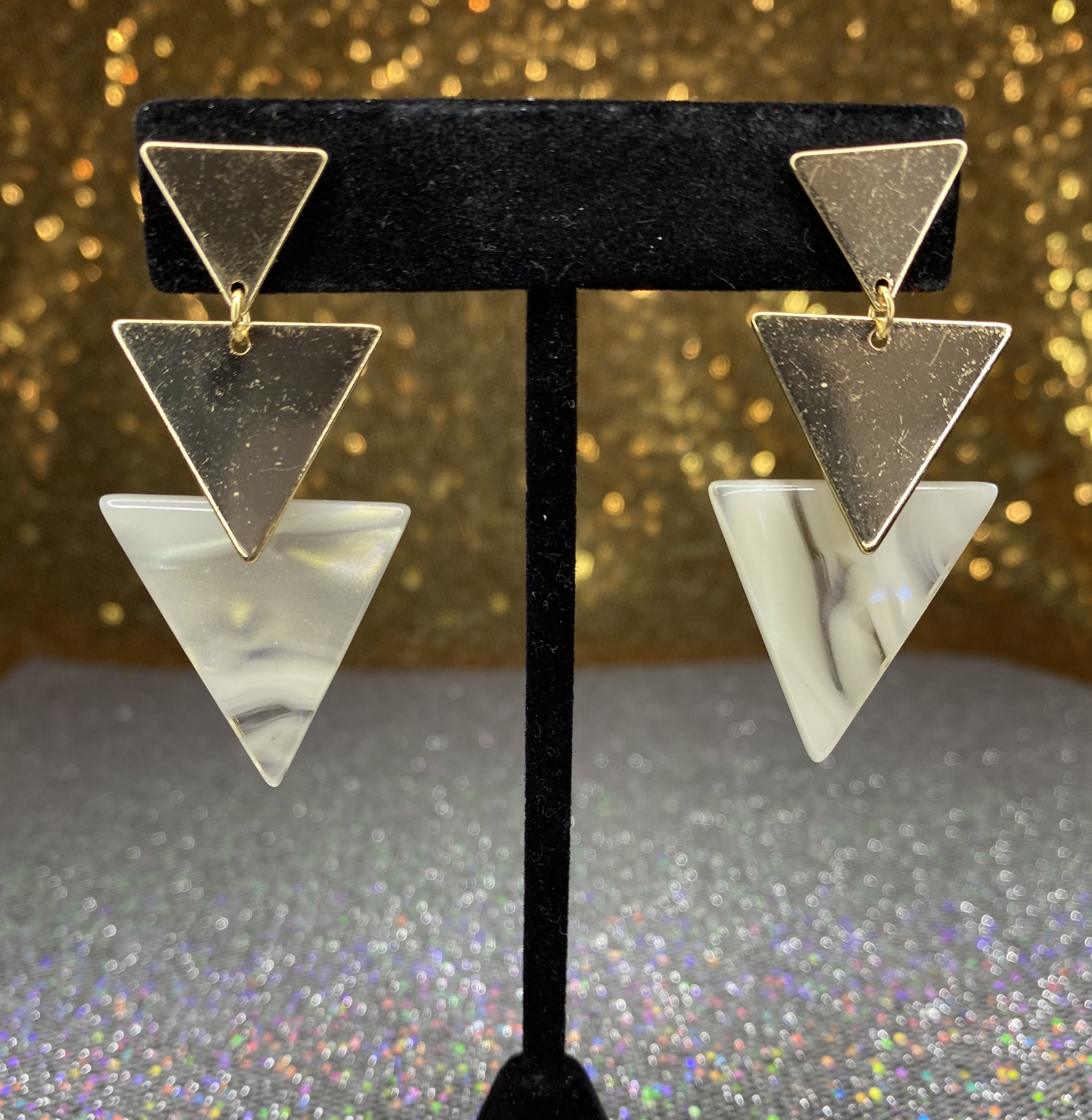Two gold triangles followed by a cream tiled triangle. 2 in. drop