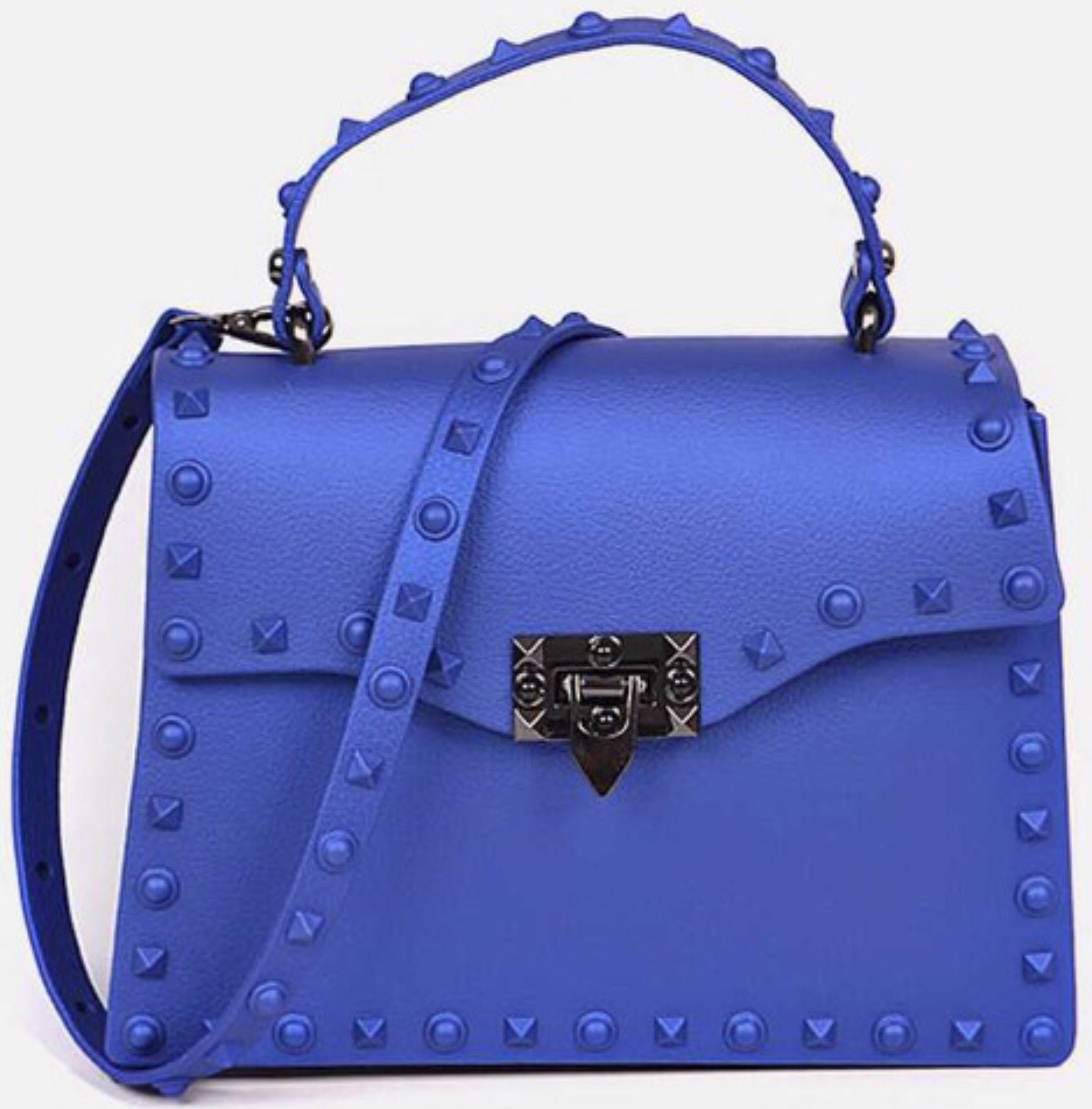 Studded Jelly Bag with removable strap. Width- 9.75” Depth- 3.25” Height- 7”