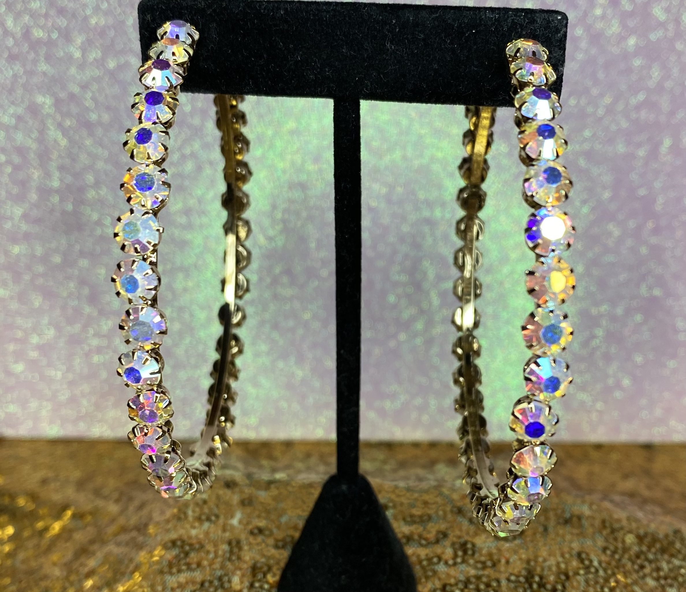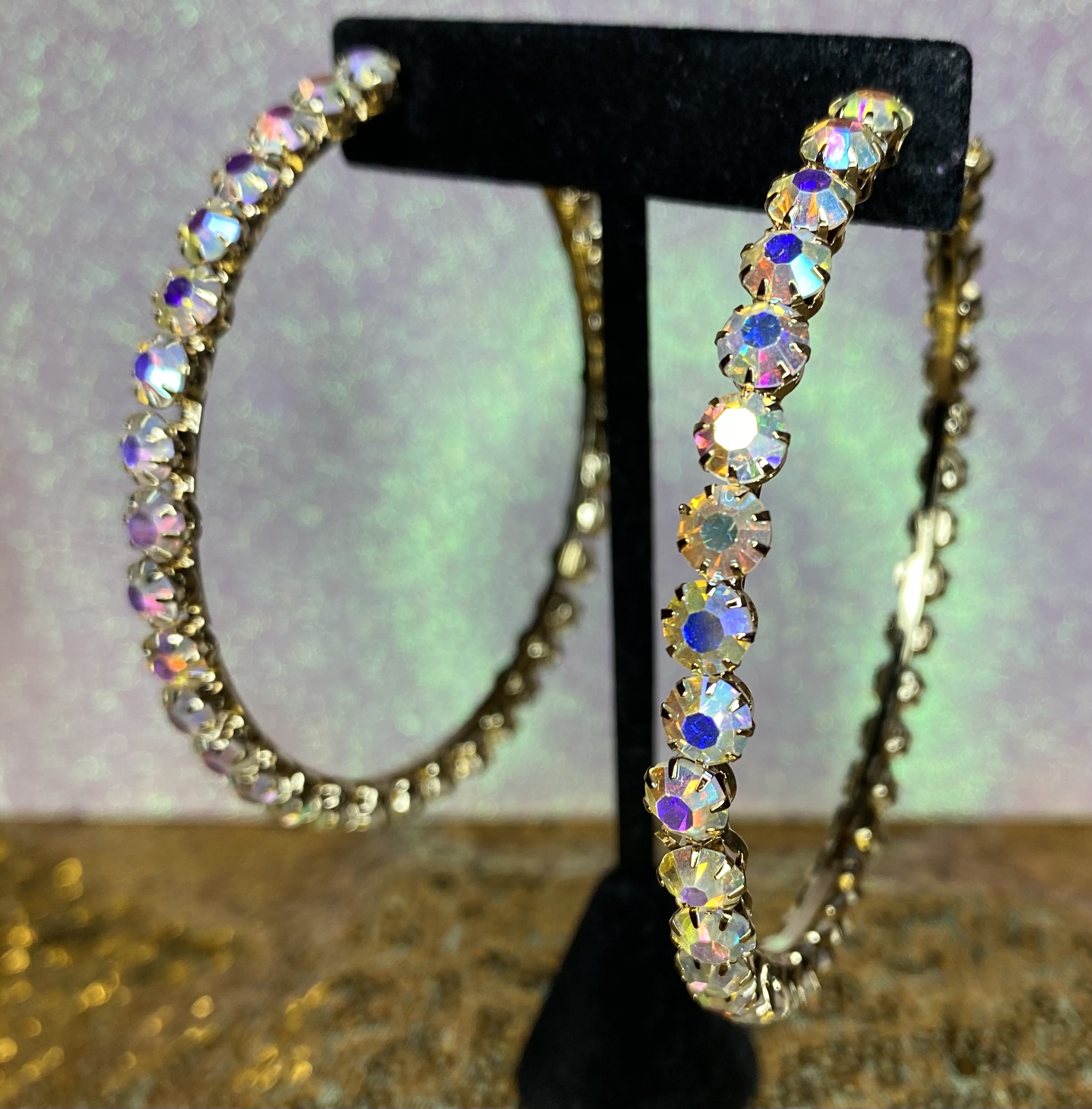 Gold AB Crystal Hoops 3.5"