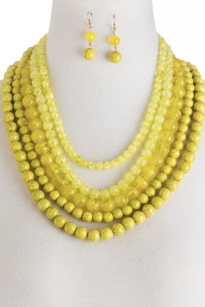 Yellow beaded multi- layered necklace and Earring Set. Necklace- 20” with 2.5” extension