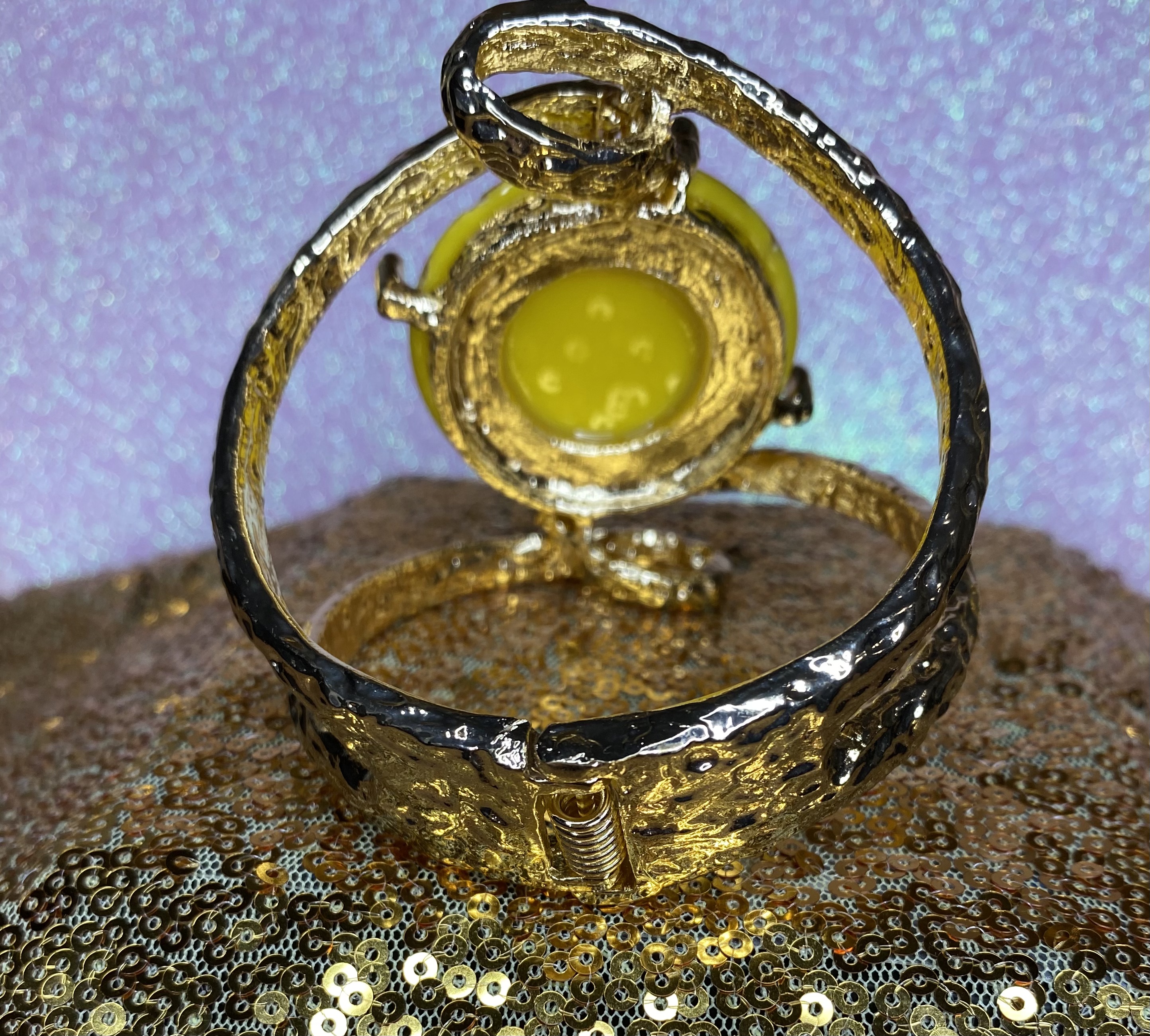 Glass Crystal Stone & Metal Hinged Bracelet.