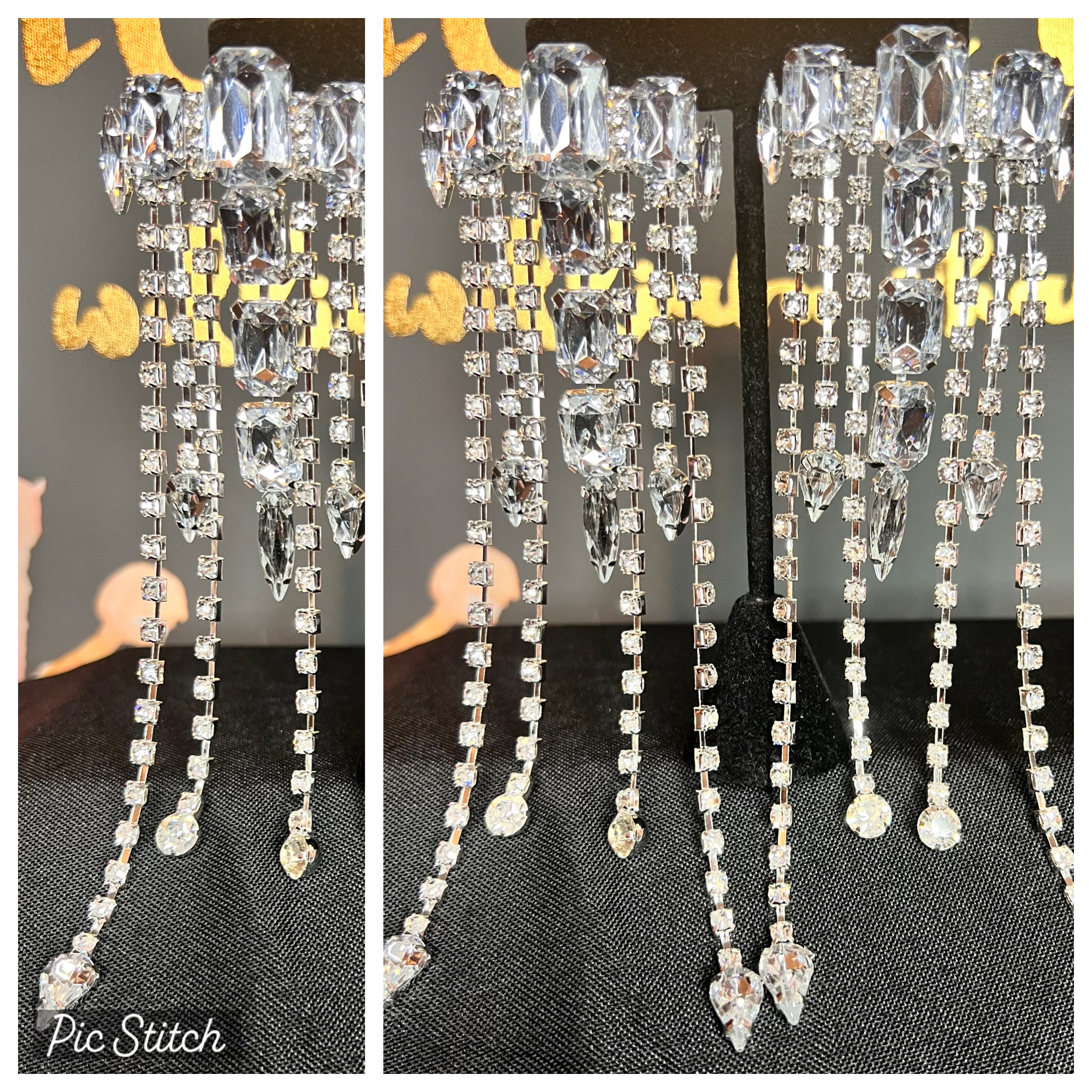 Crystal gemstone earrings with crystal strand dangles. Length- Approximately 6”