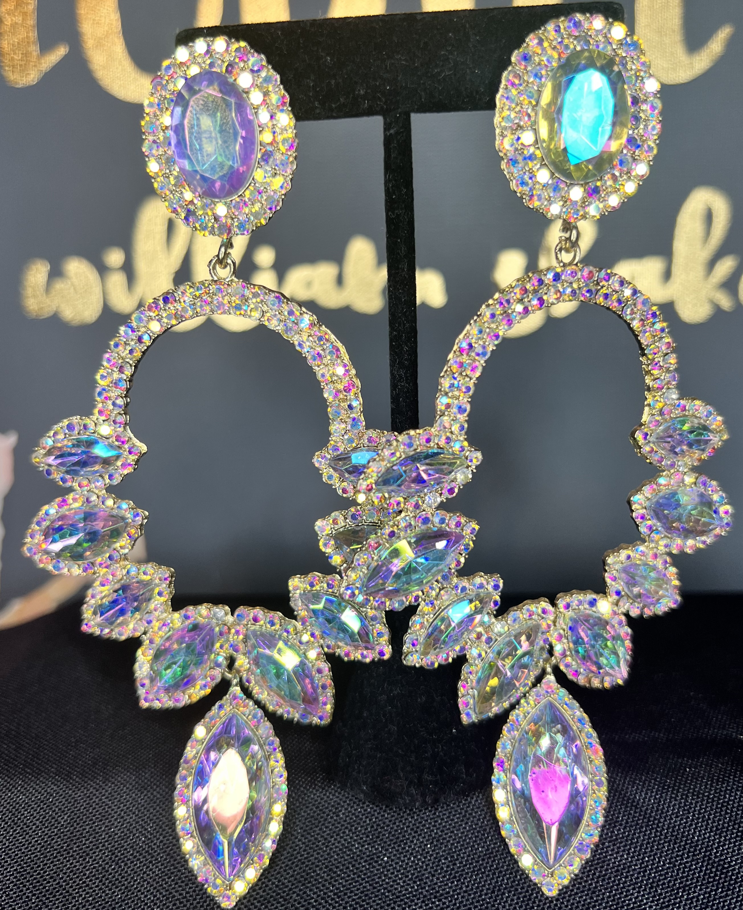 Crystal encrusted arch dangles. Length- Approximately 5”