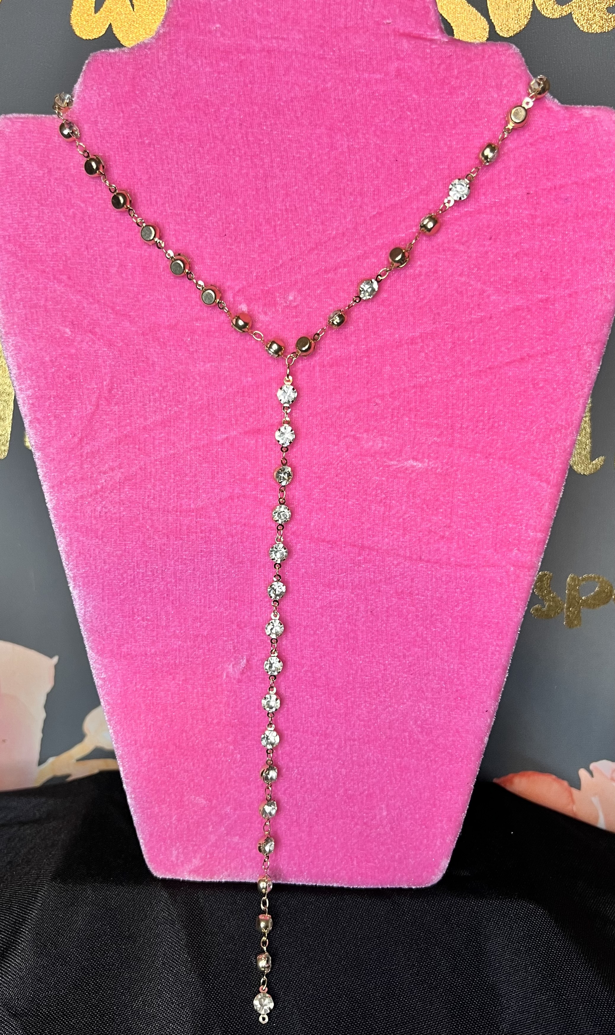 Sexy gold and crystal lariat necklace.